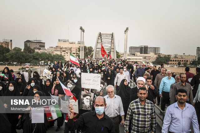 تجمع مردم وفادار و ولایتمدار اهواز در محکومیت اغتشاشات و هتک حرمت به ساحت قرآن و مقدسات عصر امروز شنبه دوم مهر ماه در میدان شهدای اهواز برگزار شد و تا محل فرمانداری اهواز ادامه داشت.