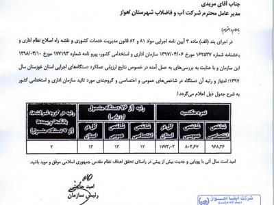 ۳۲ پله ارتقا رتبه شرکت آبفا اهواز در ارزیابی عملکرد دستگاه های اجرایی استان از سال ۹۵ تا ۹۷