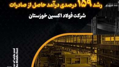 رشد ۶۱ درصدی صادرات و رشد ۱۵۹ درصدی درآمد حاصل از صادرات در فولاد اکسین خوزستان
