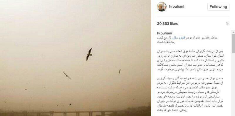 به گزارش نخبگان، صفحه اینستاگرام منتسب به حسن روحانی، رییس جمهور پیامی خطاب به شهروندان استان خوزستان منتشر کرده است.…